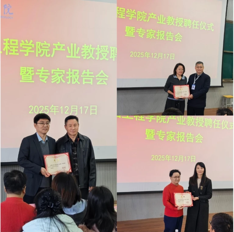 2025年12月17日,青岛伊科思技术工程有限公司总经理侯亮、副总经理孙娜和技术部部长闵鑫凭借扎实的专业理论功底、丰富的行业实践经验,正式受聘为青岛工学院产业教授。